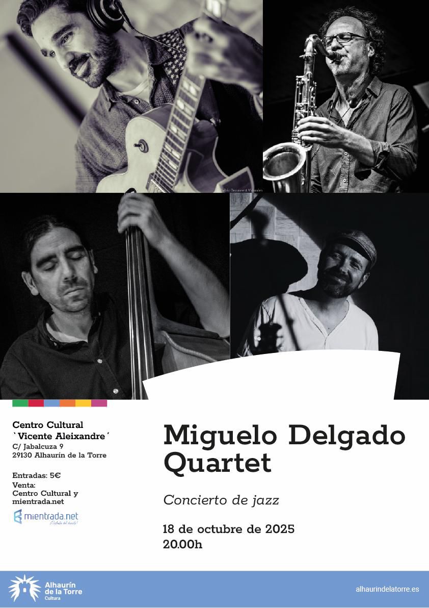 5€. Venta de entradas numeradas en el Centro Cultural Vicente Aleixandre y en https://www.mientrada.net/evento/miguelo-delgado-quartet/