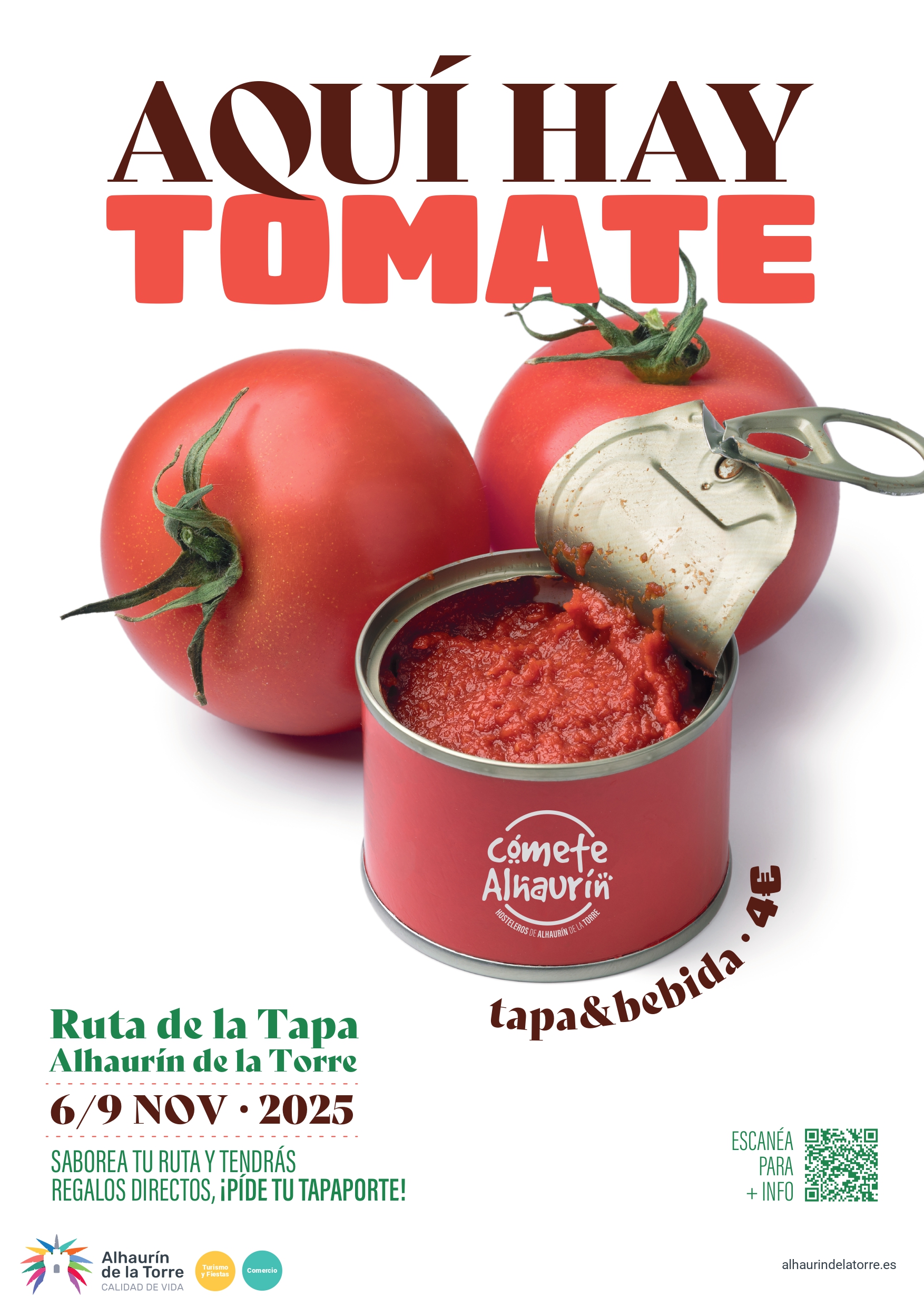 Llega a Alhaurín de la Torre la tercera edición de la ‘Ruta de la Tapa’, concretamente del jueves 6 al domingo 9 de noviembre, con el tomate como ingrediente principal o de acompañante destacado de las recetas. No en vano, el lema elegido para la campaña de este año es ‘Aquí hay tomate’.