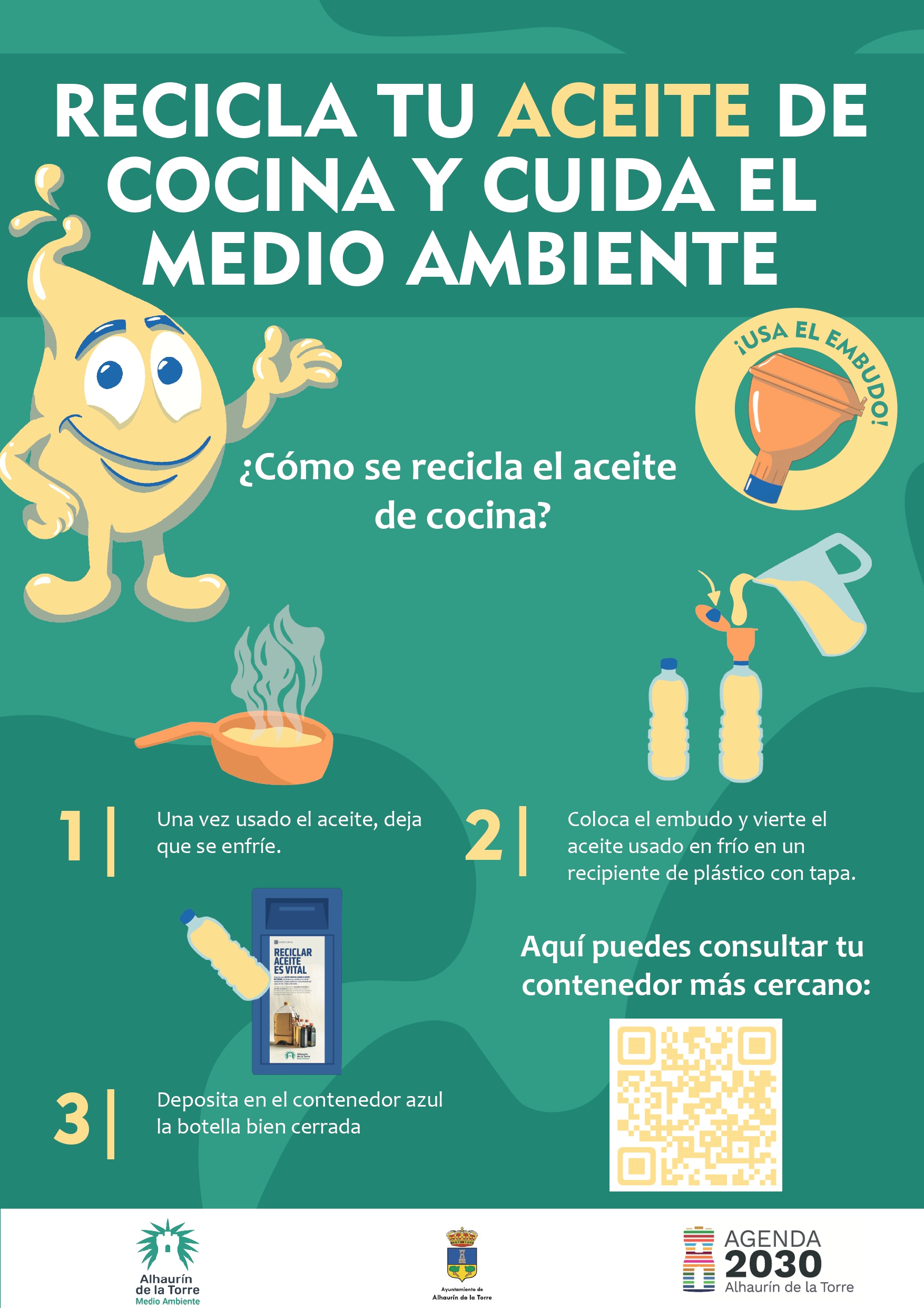 En el primer, segundo y tercer trimestre de este año la cantidad asciende a 6,47 toneladas. “Si la tendencia sigue así, podríamos decir que para diciembre de 2025, se habrá cuadruplicado la cantidad de aceite vegetal usado recogido a través de los contenedores de la vía pública”, señala el Área de Medio Ambiente, que anima a la ciudadanía a que contribuya separando el aceite en origen y depositándolo en los contenedores adecuados. Para ello, pueden consultar la ubicación de cada una de las unidades en el mapa que se puede consultar AQUÍ y en el código QR que figura en el cartel adjunto.