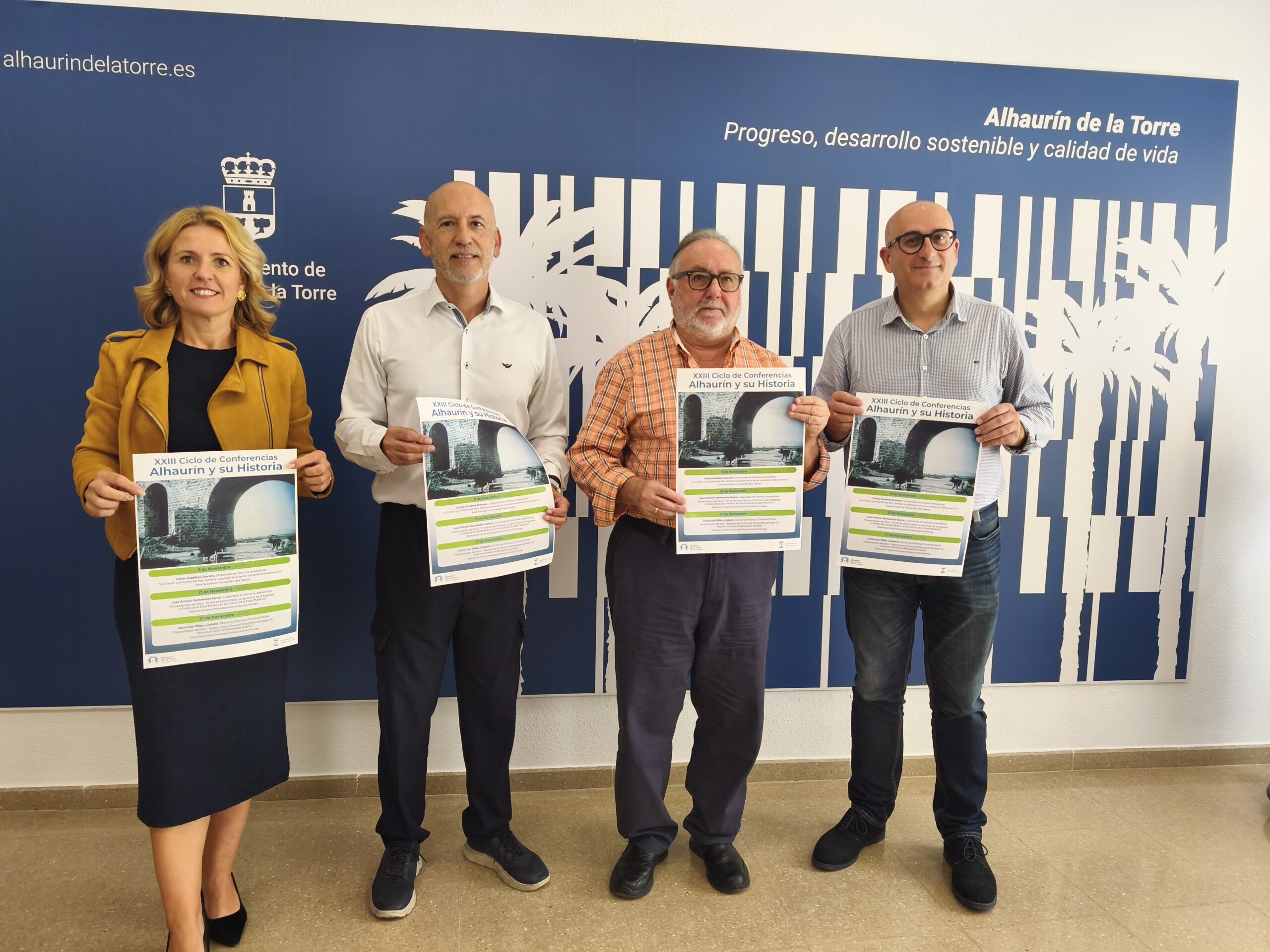 El alcalde de Alhaurín de la Torre, Joaquín Villanova, y los concejales de Patrimonio Histórico y de Cultura, Manuel López y José Manuel de Molina respectivamente, junto a la técnica de Cultura, Antonia Cordero, han presentado este viernes el XXIII Ciclo de Conferencias ‘Alhaurín y su Historia’, que se desarrollará a lo largo de este próximo mes de noviembre.