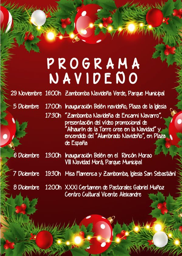 Ya el viernes, 5 de diciembre, desde las cinco de la tarde habrá música con Encarni Navarro en la Plaza de España previo al gran encendido del alumbrado que será a las 19 horas con una gran fiesta posterior con un DJ. Este día también se presentará el vídeo promocional ‘Alhaurín de la Torre cree en la Navidad’.